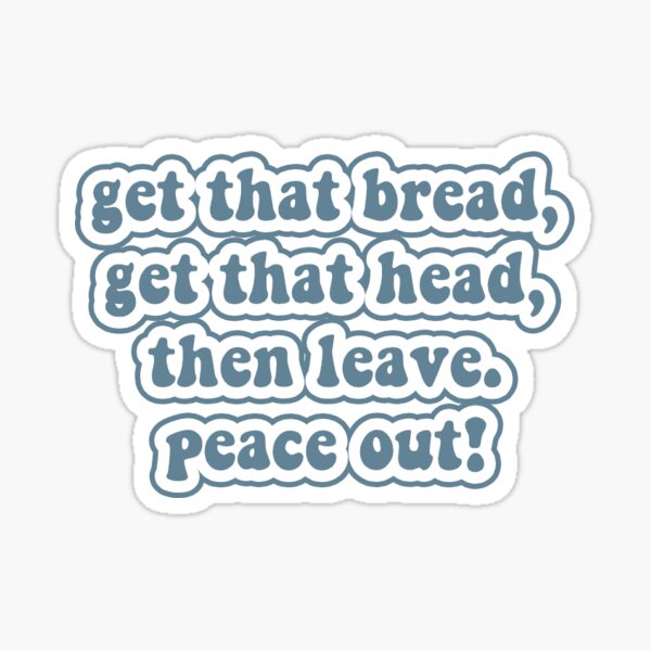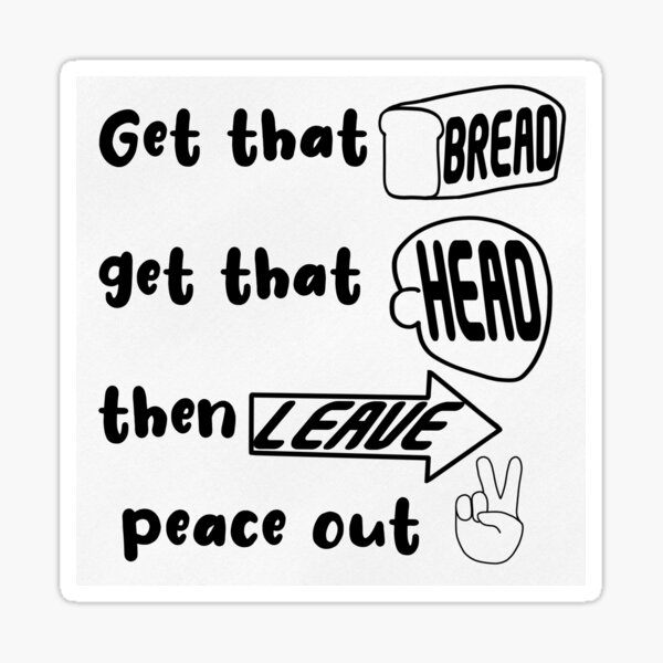 Get That Bread Get That Head Then Leave Peace Out Sticker By Sarina3294 Redbubble