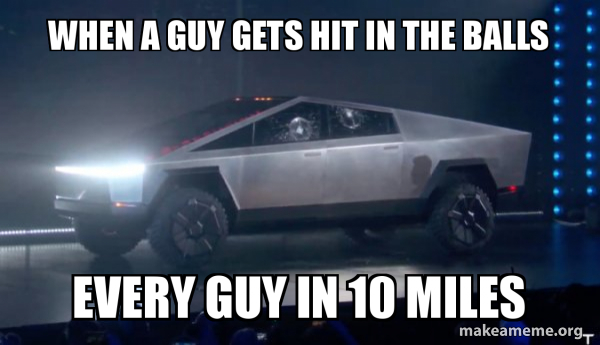 When A Guy Gets Hit In The Balls Every Guy In 10 Miles Tesla Truck Make A Meme