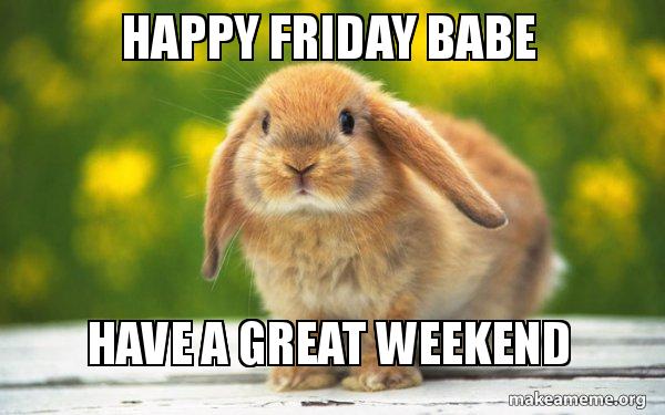 Happy Friday Babe Have A Great Weekend Regretful Rabbit Make A Meme