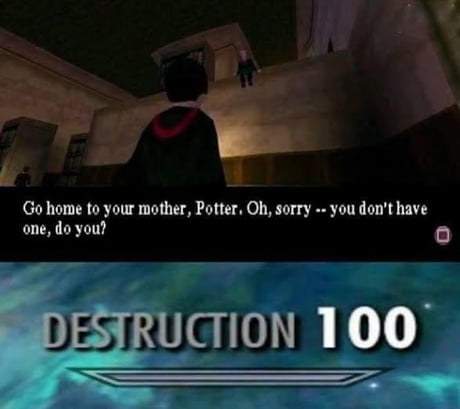 Nice Earmuffs Potter Did Your Mum Make Them For You Destruction 100 Skyrim Skill Tree Know Your Meme