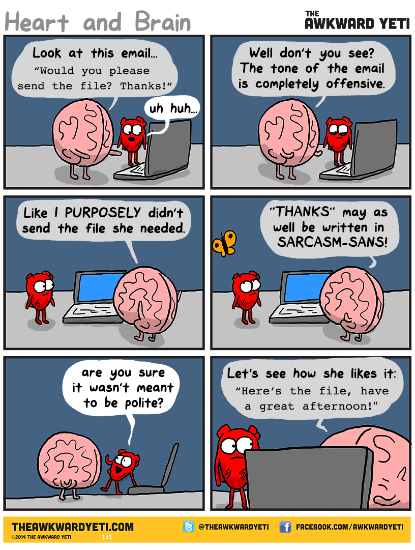Heart And Brain And Stomach Awkward Yeti Heart And Brain Comic Funny Comics