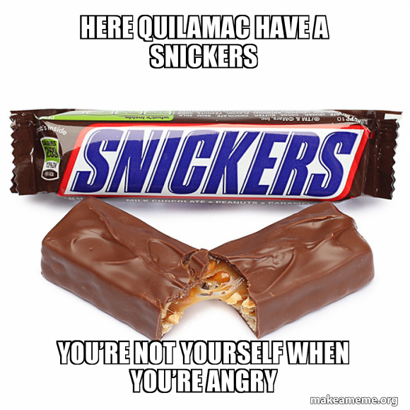 Here S A Snickers Bar You Get A Little Delusional Without It Snickers Candy Meme Generator