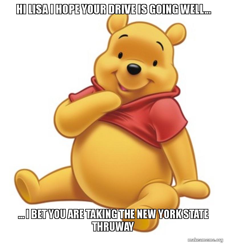 Hi Lisa I Hope Your Drive Is Going Well I Bet You Are Taking The New York State Thruway Make A Meme