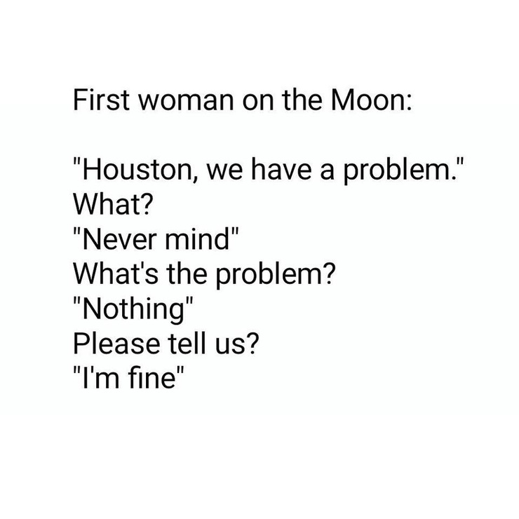 First Woman On The Moon Houston We Have A Problem What Never Mind What S The Problem Nothing Please Tell Us I M Fine Sexism Is Funny Haha Funny Meme On Awwmemes Com