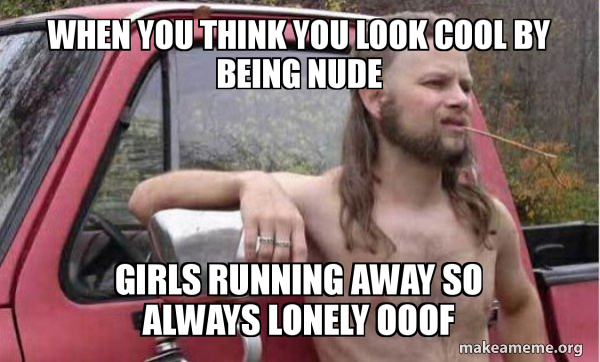When You Think You Look Cool By Being Nude Girls Running Away So Always Lonely Ooof Almost Politically Correct Redneck Make A Meme