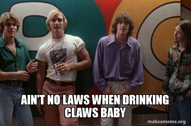Water 1 More White Claw Me Cig Mair Ain T No Laws When You Drinking Claws Drinking Meme On Me Me